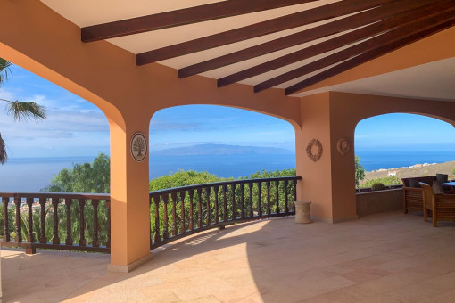 Debajo se extiende, por un lado, la costa oeste con sus pequeños pueblos y ciudades, campos de golf, plantaciones y vistas a La Gomera. Por el otro lado se encuentra la impresionante reserva natural de la montaña más alta de España, el Teide.